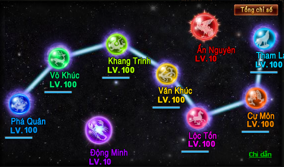 | Ẩn Nguyên | Tăng tất cả chỉ số của các Tinh Đấu | Cấp Tinh Đấu trung bình: 10 |
