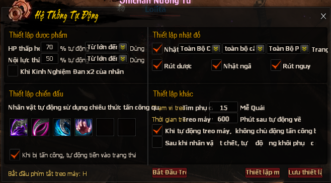 - Cài đặt các chiêu thức võ học trong chế độ Auto