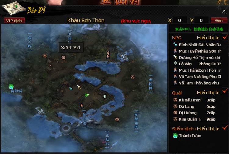 Với bản đồ khu vực, đại hiệp cũng được cung cấp đầy đủ địa điểm các NPC, các loại quái và điểm dịch chuyển. Các địa điểm trên bản đồ có thể tới tùy ý bằng cách click chuột trái.