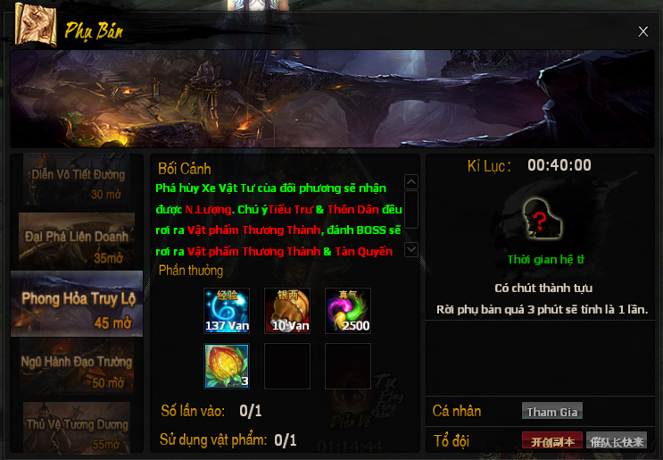 Để tham gia Phụ Bản, đại hiệp click biểu tượng