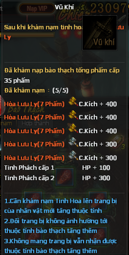 Nhờ đó đại hiệp khi trang bị các loại Bảo Thạch cao cấp sẽ nhận được các tính năng Tinh Phách cấp 1, Tinh Phách cấp 2, từ đó sở hữu các thuộc tính tăng thêm.