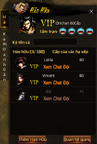 Trong game, kết hảo hữu là điều không thể thiếu. Đại hiệp có thể click biểu tượng